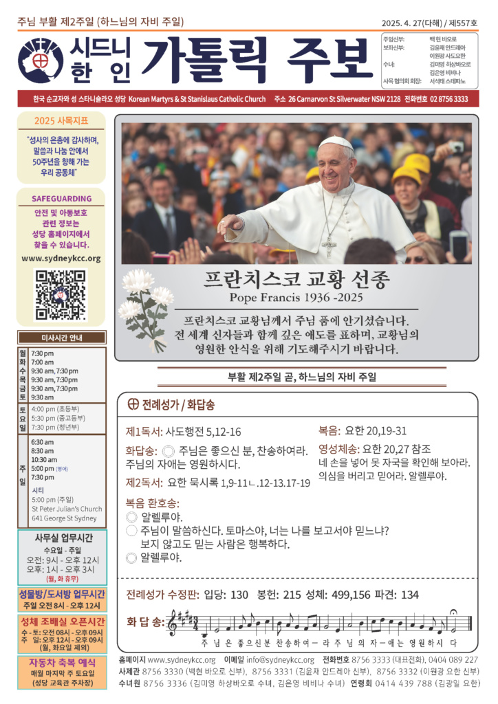 본당소식 주보 April 26, 2025April 26, 2025 2025년 4월 27일 주보 Posted By: editor 833 Views 20250427 copyDownload