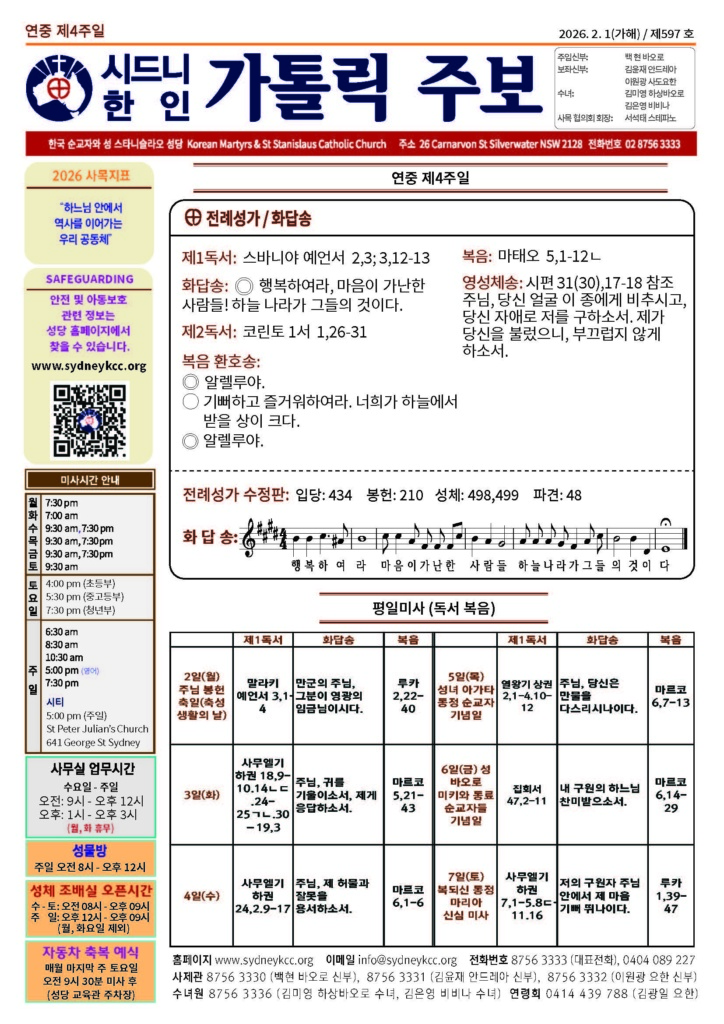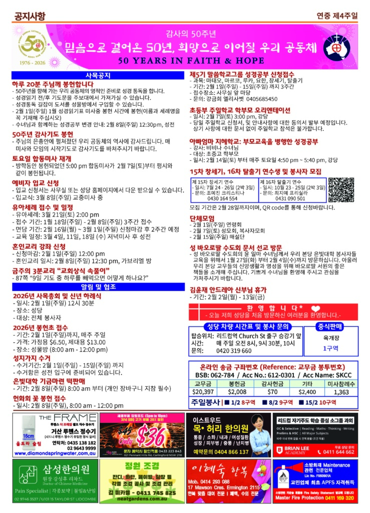 본당소식 주보 January 31, 2026January 31, 2026 2026년 2월 1일 주보 Posted By: editor 40 Views 20260201 finalDownload