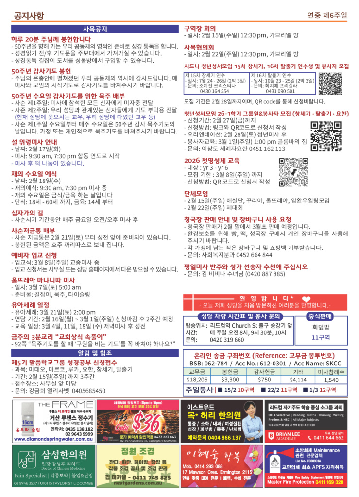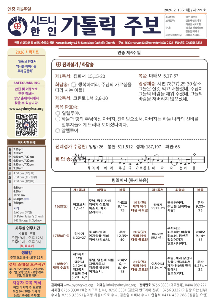 본당소식 주보 February 14, 2026February 14, 2026 2026년 2월 15일 주보 Posted By: editor 170 Views 20260215 copyDownload