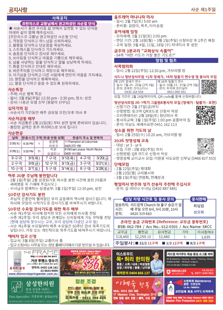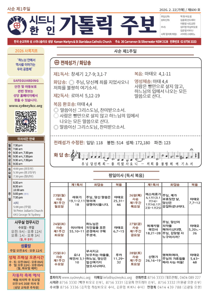 본당소식 주보 February 21, 2026February 21, 2026 2026년 2월 22일 주보 Posted By: editor 20 Views 20260222 copyDownload