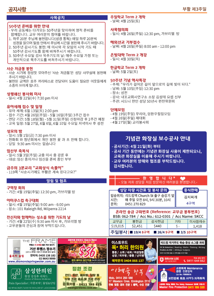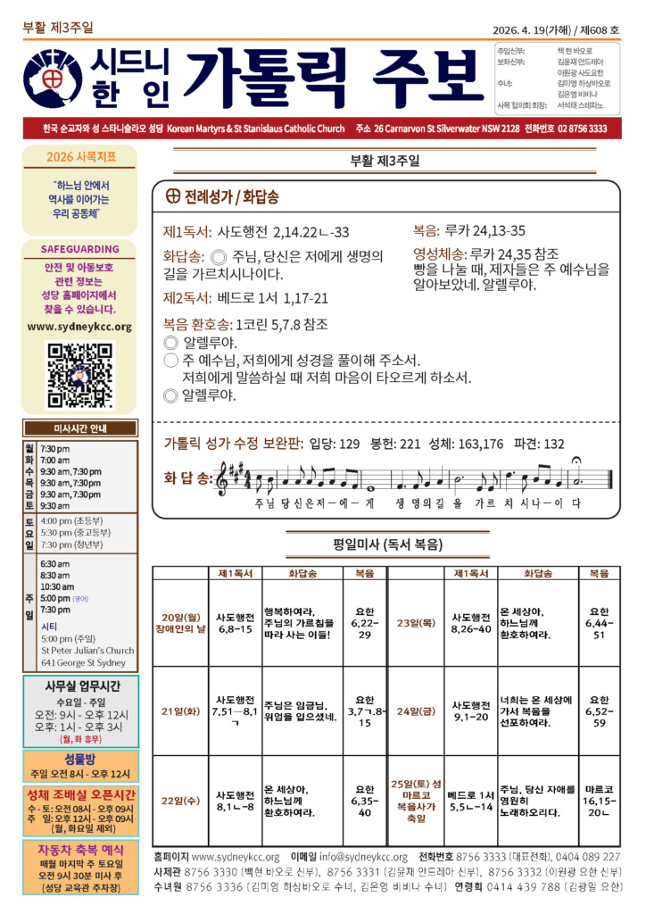 본당소식 주보 April 18, 2026April 18, 2026 2026년 4월 19일 주보 Posted By: editor 185 Views 20260419 copyDownload