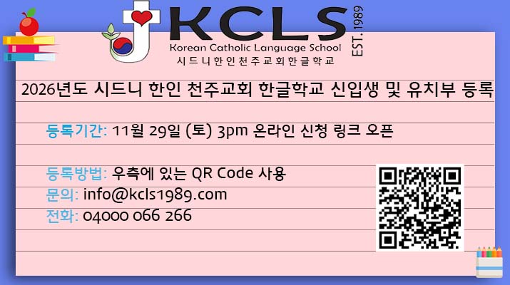 Headline 본당소식 사진앨범 November 16, 2025November 16, 2025 2026학년도 시드니 한인 천주교회 한글학교 신입생/유치부 등록 Posted By: editor 137 Views